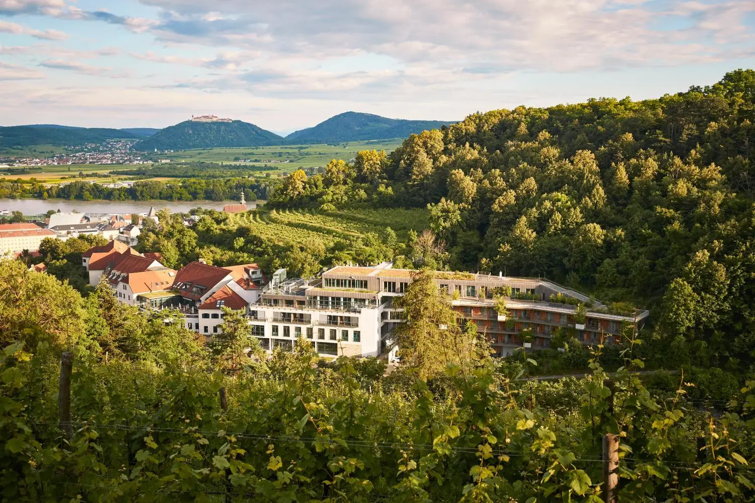 Krems an der Donau Show on mapWhat if your wine-country hotel came with vineyard views, a full spa and a hilltop position above one of Austria’s loveliest old towns? Steigenberger Hotel & Spa Krems answers that rather well... Overlooking Krems in the Wachau region, it is not a winery stay in the estate sense, but the location is pure wine territory: Wachau growers nearby, Danube views below, and a hotel that even builds vineyard picnics, torch-lit vineyard walks and tastings at local wineries into the broader experience. The hotel itself is larger and more classical than a tiny vineyard hideaway, but that scale buys you plenty: 173 rooms and suites, indoor and outdoor pools, saunas and one of those panoramas that makes a glass of Grüner Veltliner feel almost compulsory. The ideal place for people who want Wachau scenery with all the spa comforts included. Read moreGuest rating: 8.3 (very good)Price from: TND 571 /night