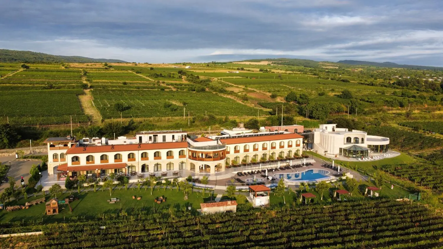 Gurjaani Show on mapLooking for a stylish, newly renovated resort where the vines stretch out into the horizon and the Caucasus Mountains rise behind them? In that case, we have found the perfect place for you - Panorama Kakheti Resort. Located in Akhasheni, just 1½ hours from Tbilisi, this designer hotel blends Georgian motifs with modern flair in a way that feels both fresh and warmly familiar... Cozy, bright rooms and spacious suites with balconies or terraces offer incredible views over vineyard-carpeted valley and mountain ridges. You’ll also find Georgia’s largest indoor spa here, complete with a soothing aqua zone, hammam, saunas, and both indoor and outdoor pools! But what really elevates the experience is the wine connection: you can sip local varietals in the vineyard, enjoy tastings by the glass, or take guided tours through nearby wineries - all designed to bring Kakheti’s renowned wine culture right to your fingertips. Read moreGuest rating: 9.6 (exceptional)Price from: CHF 104 /night
