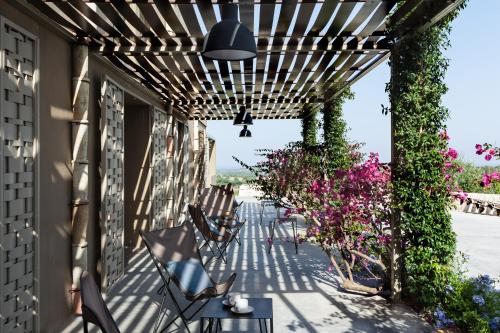 Housed in a former winery, it boasts 8 sleek rooms and suites showcasing minimalist design with patios overlooking the groves. Some of them even include a private pool!