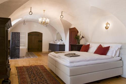 Part medieval castle, part luxury hideaway, this restored estate feels worlds away from the everyday. The rooms are grand yet inviting, with vaulted ceilings, antique details, and views that stretch over rows of vines and distant peaks. But what really makes it special is the setting: surrounded by some of Alto Adige’s top wineries and steeped in centuries of winemaking tradition.